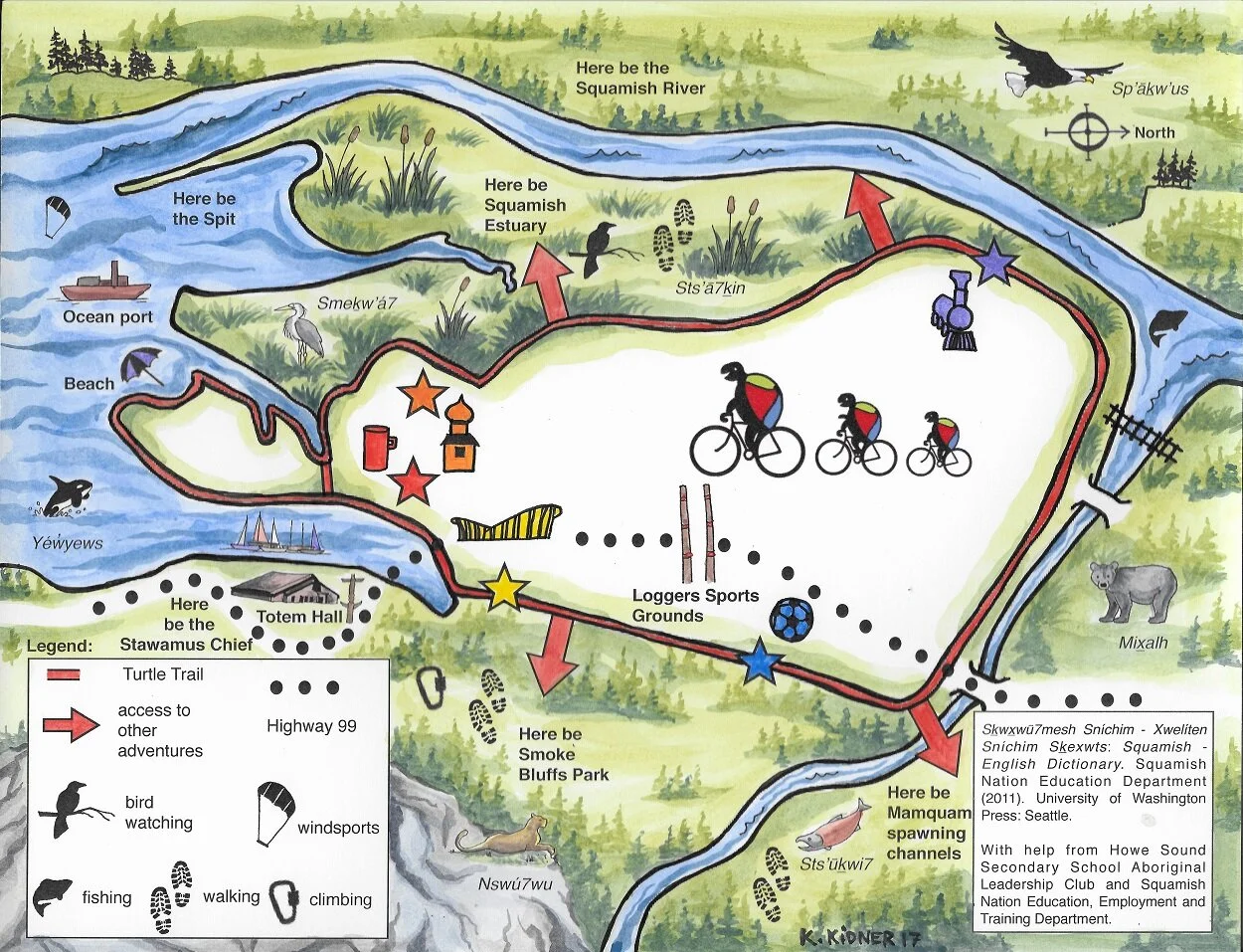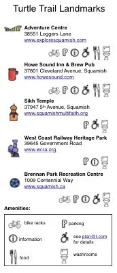 The Turtle Trail connects five major Squamish landmarks and identifies access points to additional trail networks.