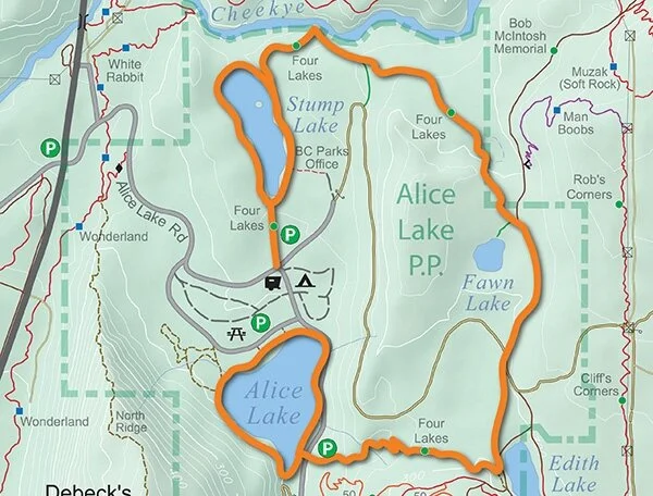 View four lakes on a single hike. Four Lakes Trail is one of many popular paths in Alice Lake Provincial Park